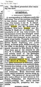 A newspaper account of the double-wedding of Edwin’s two daughters from February 1891 indicated that the reception was held at the residence of Edwin, which was named “Reesa Vale”, located two miles northwest of Jefferson. A fairly extensive search failed to uncover information about a residence with this name. The name “Vale” is of Latin origin, derived from the word “vallis”, which means “valley.” It evokes images of a serene and sheltered landscape.