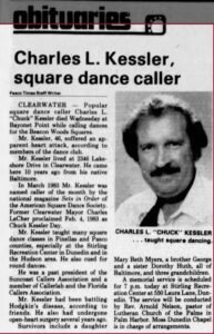 Charles and Elaine were involved in square dancing. Charles was a square dance “caller.” He moved from East Baltimore to Hillsborough, Florida. He and Elaine divorced on 8 Sep 1980.